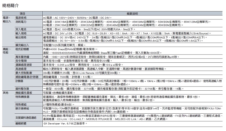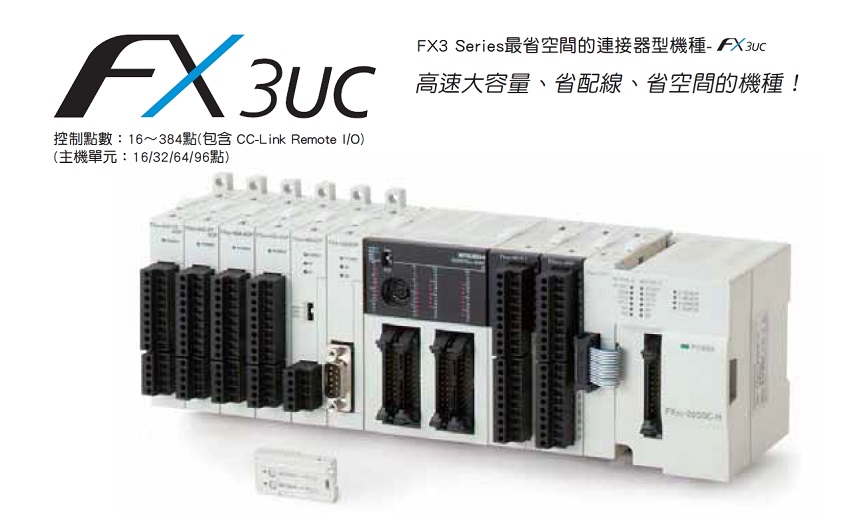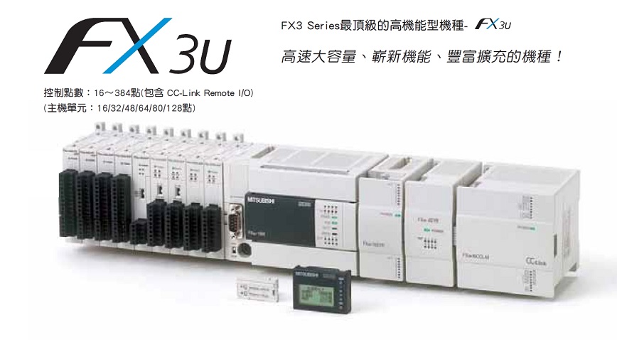 第三代小型可程式控制器FX3系列~ 千錘百鍊的成果,完全展現在FX3系列PLC的性能!豐富的擴充性能,配合嶄新的內藏機能,權力應對各產業領域!