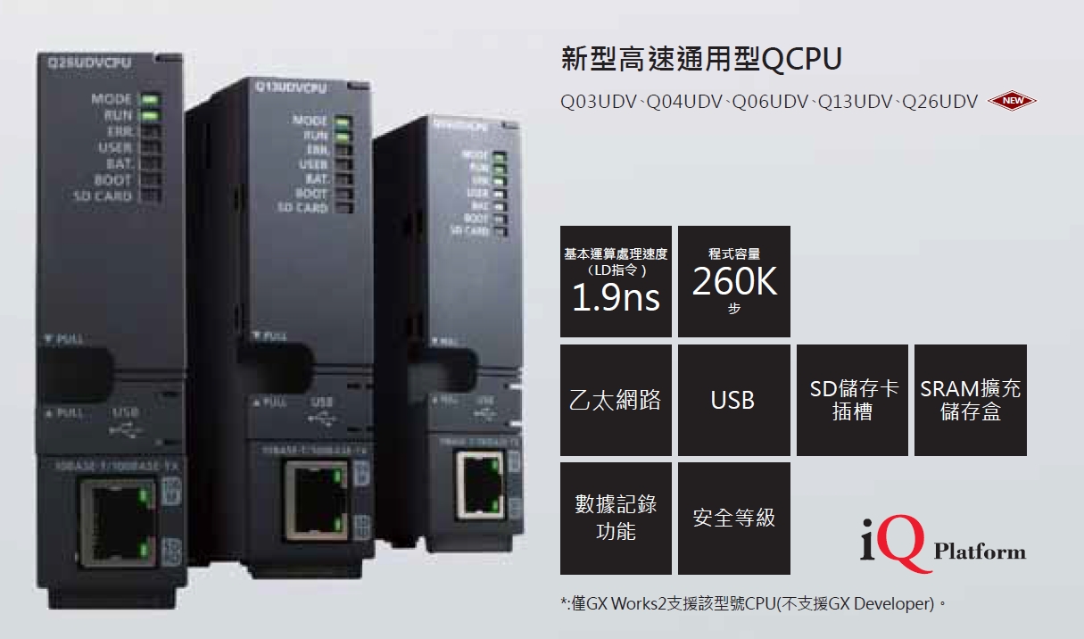 伴隨著生展資訊,例如生產結果和可追溯性等方面的增加。生產方需要更為高速和高效的生產過程。MELSEC-Q系列新一代可程式控制器”通用型QnU”成為了滿足這些市場需求的領軍產品。